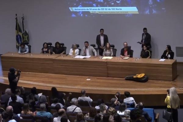 Na manhã desta segunda-feira (2/12), a Câmara Legislativa do Distrito Federal celebrou os 50 anos do Centro de Ensino Fundamental 102 Norte. A iniciativa do deputado Hermeto (MDB) prestigiou a trajetória da instituição, homenageando professores, servidores, estudantes e familiares de alunos. Durante o evento, o parlamentar e a secretária de Educação (SES-DF), Hélvia Paranaguá, se comprometeram a investir R$ 100 mil na unidade escolar para construção de um espaço maker — laboratório de aprendizagem dinâmico.