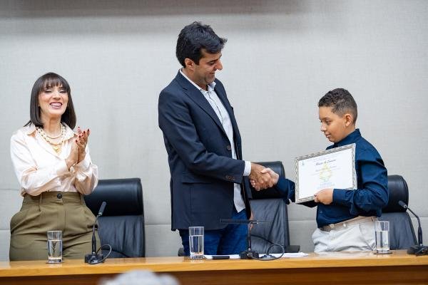 Rafael Kessler Ferreira, de 11 anos, recebeu a homenagem por ter criado uma fórmula matemática. Solenidade também destacou a necessidade de políticas públicas voltadas ao desenvolvimento de pessoas com altas habilidades