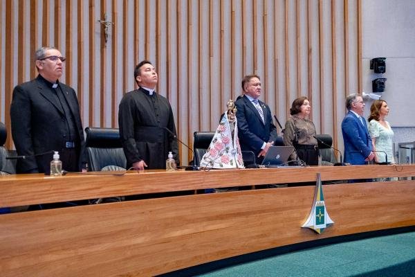 Na manhã desta terça-feira (4), a Câmara Legislativa do Distrito Federal recebeu a imagem peregrina de Nossa Senhora de Nazaré, padroeira do Pará e símbolo de fé homenageado durante o Círio de Nazaré, uma das principais celebrações católicas do Brasil que ocorre, anualmente, no segundo domingo de outubro. A solenidade, presidida pelo deputado João Cardoso (Avante), reuniu parlamentares, líderes religiosos e fiéis que compartilharam testemunhos de promessas, milagres e gratidão à Santa.