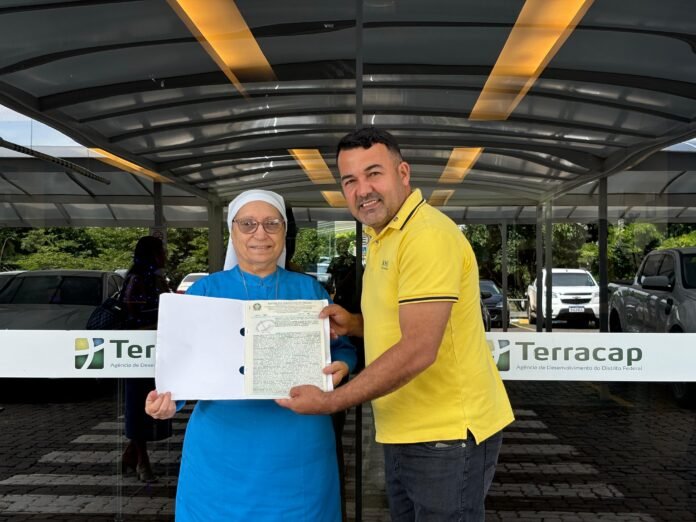 Foi entregue na tarde desta última segunda-feira (02/12), pela Companhia mobiliária de Brasília (Terracap), a escritura do imóvel onde se encontra funcionando há 33 anos a entidade denominada Obra das Filhas do Amor de Jesus Cristo, que é presidida pela irmã Maria Aurimar de Andrade Silva. O terreno é localizado na Área Especial 14/18, do Setor Oeste do Gama. O deputado Rogério Morro da Cruz, cujo empenho e dedicação contribuiu para a concessão do documento, esteve presente no evento.