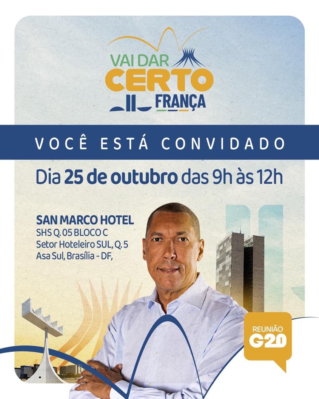 O Grupo dos Amigos do França, conhecido como G20 — em referência ao número 20 do partido Podemos — realiza neste sábado, 25 de outubro, sua 10ª reunião mensal, consolidando-se como um dos mais ativos fóruns de articulação política do DF.