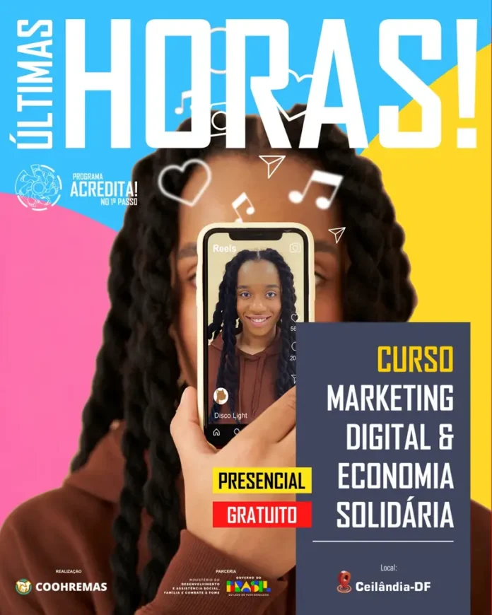 Ainda dá tempo de garantir sua vaga na Capacitação GRATUITA e presencial em Ceilândia, com foco em Marketing Digital e Economia Solidária.