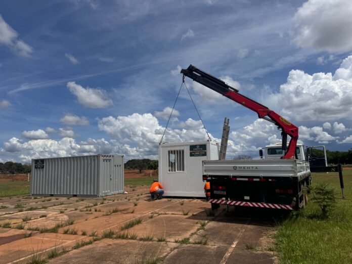 Os canteiros e tapumes das obras de construção do Hospital do Recanto das Emas (HRE) e do Hospital Clínico Ortopédico (HCO), no Guará. Nesta quarta-feira (22) chegaram os containers para as equipes de trabalho no Guará. Nos próximos dias, outros chegam ao Recanto das Emas.