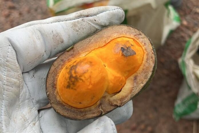 As coletas de sementes são parte de um calendário planejado que se adapta ao amadurecimento das diferentes espécies. As equipes da Novacap percorrem o Cerrado em busca de frutos maduros, como manga espada, pitomba e butiá, entre outros.