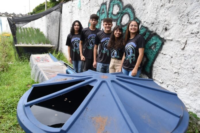 A técnica emprega materiais reciclados, como caixas d’água e eletrobombas adaptadas, para criar um sistema de recirculação em circuito fechado. “O projeto integra a hidroponia com a aquicultura, utilizando os resíduos dos peixes como nutrientes para as hortaliças. As plantas, por sua vez, purificam a água, que retorna ao tanque dos peixes”, explica Lorrany Bonfim, de 17 anos, uma das estudantes à frente da iniciativa. Segundo ela, o sistema economiza 98% de água em relação à agricultura convencional, com perdas ocorrendo apenas por evaporação e descarte.