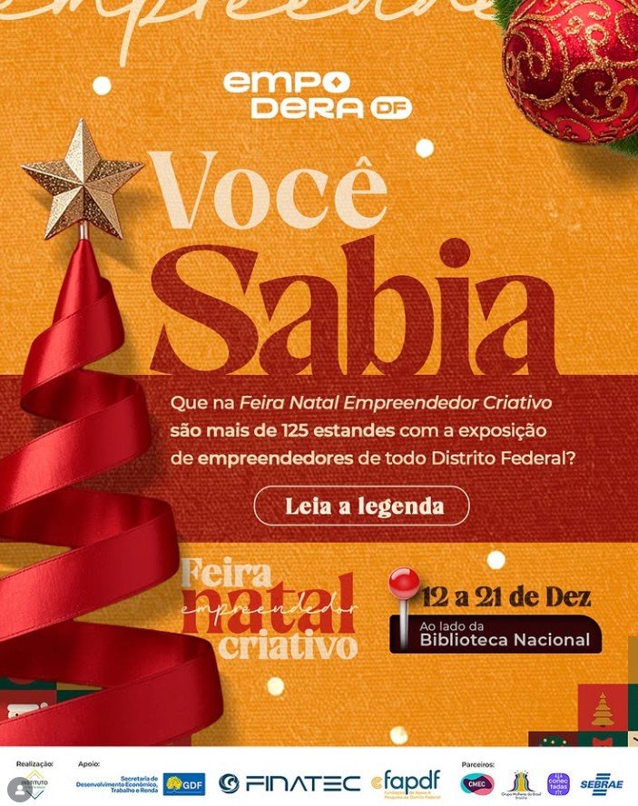Feira de Natal do Empreendedor Criativo reúne 134 estandes ao lado da Biblioteca Nacional, com marcas autorais, artesanato, gastronomia e entrada gratuita em Brasília