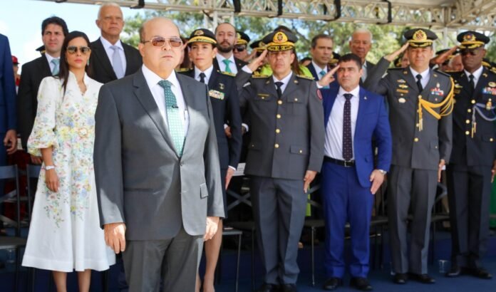 “A troca da Bandeira Nacional é um momento cívico muito importante e tem um forte simbolismo. No aniversário de Brasília, esse hasteamento tem ainda mais relevância. É por isso que nos reunimos aqui na Praça dos Três Poderes: para celebrar nosso amor à pátria e nosso amor por Brasília”, declarou o governador Ibaneis Rocha.