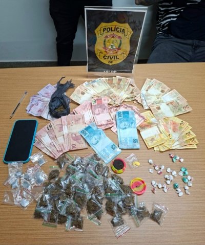 Diante da situação e com o objetivo de impedir a possível destruição de provas, foi realizado o arrombamento do portão. O suspeito informou aos policiais que havia porções de entorpecentes acondicionadas para venda sobre o sofá da sala. Além do material indicado, outras porções de diferentes substâncias foram localizadas em diversos cômodos da residência.