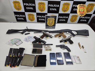 No cumprimento do mandado, os policiais localizaram na residência três pistolas – duas calibre .40, de uso restrito, e uma calibre 9mm –, 12 carregadores sobressalentes, mais de 80 munições de diferentes calibres e 19 certificados de registro de armas em nome do preso e de terceiros.