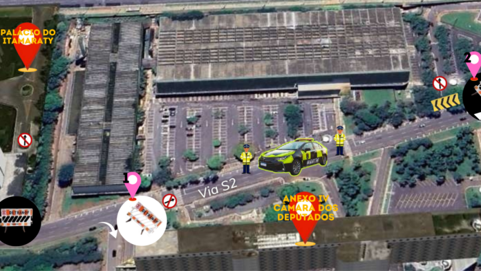Das 5h às 16h de domingo (7), serão instalados três Pontos de Controle de Trânsito (PCTRANs) na via S2:o primeiro fará o fechamento do acesso ao túnel da Cúria da Catedral; o segundo, na altura do anexo IV da Câmara dos Deputados, para impedir o acesso de pessoas e veículos no túnel do Itamaraty e desviando para a S3 os veículos que estiverem no sentido L4 sul; e o terceiro, no acesso ao SESI Lab, para permitir o estacionamento somente de táxis e viaturas.